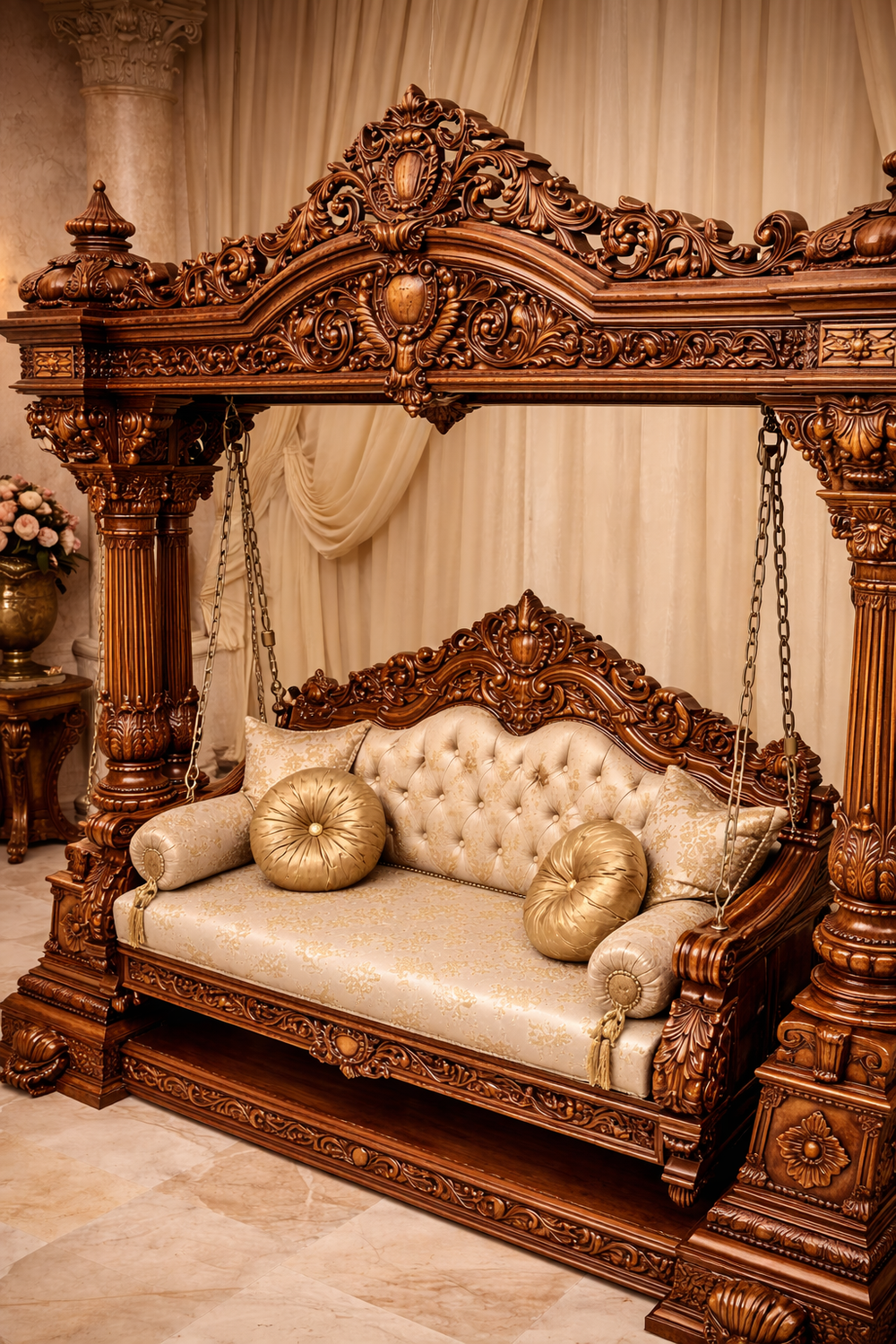 This designer wooden swing jhula is not just furniture—it is a statement of heritage, elegance, and premium craftsmanship, created for those who appreciate luxury wooden furniture with royal appeal.